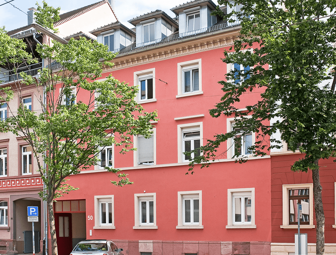 Der „kleine Bruder“ des Wohnhauses B 42, doch braucht sich dieses Gebäude in keiner Weise dahinter verstecken. Hinter der wunderschönen und einladenden Fassade warten sechs Wohnungen, die zur Jahrhundertwende errichtet und 2004 kernsaniert wurden. Dabei haben die geräumigen Wohnungen jedoch nichts von ihrem charmanten Altbau-Flair verloren und warten jetzt sogar mit moderner Ausstattung auf. Dazu zählen auch Balkone, die sich in den rückseitigen Innenhof erstrecken.