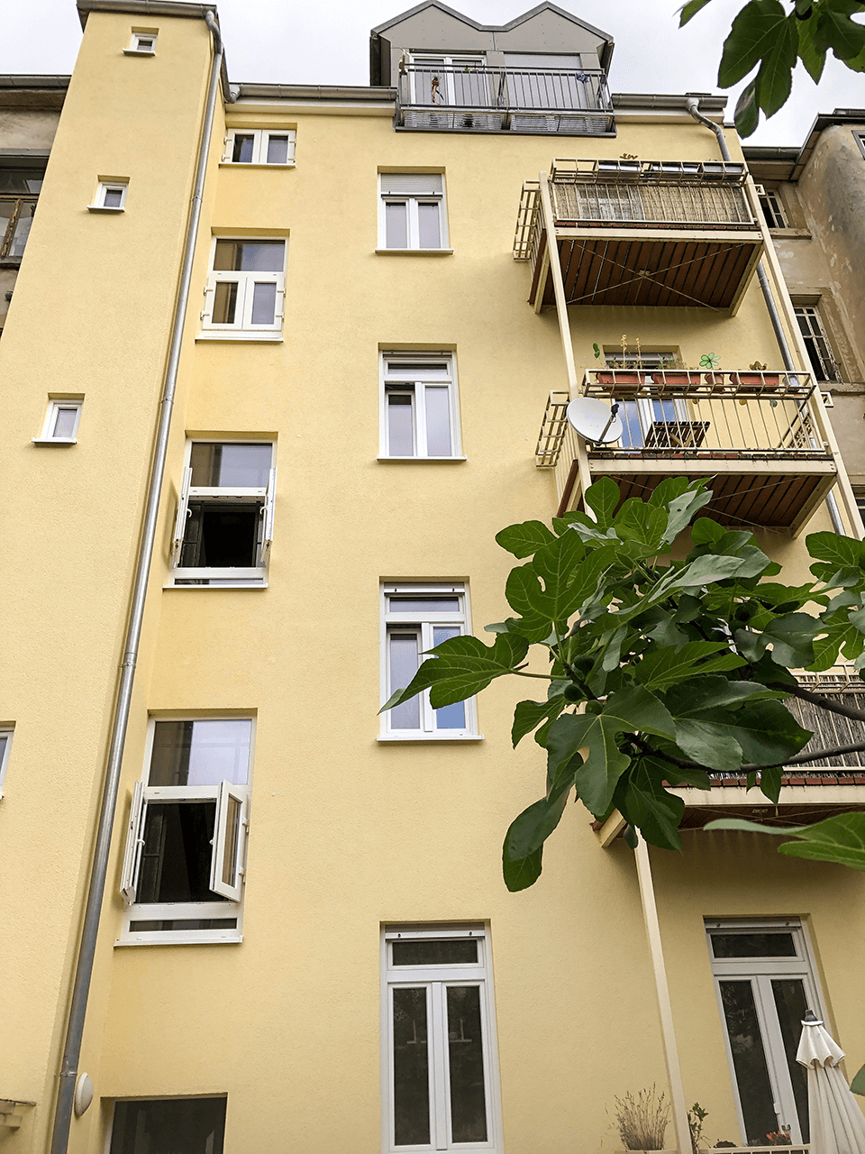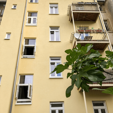 Klein und fein. Insgesamt fünf 2-Zimmer-Wohnungen beherbergt das einzigartige Gebäude, das besonders durch seine Architektur mit unzähligen Elementen der Gründerzeit auffällt. Diese finden sich auch im Treppenhaus wieder, in dem verzierte Bodenfließen mit einem kunstvollen Geländer harmonisch miteinander verschmelzen. Der idyllische, grüne Hinterhof und die neuen Balkone sorgen für Freiraum in der City.